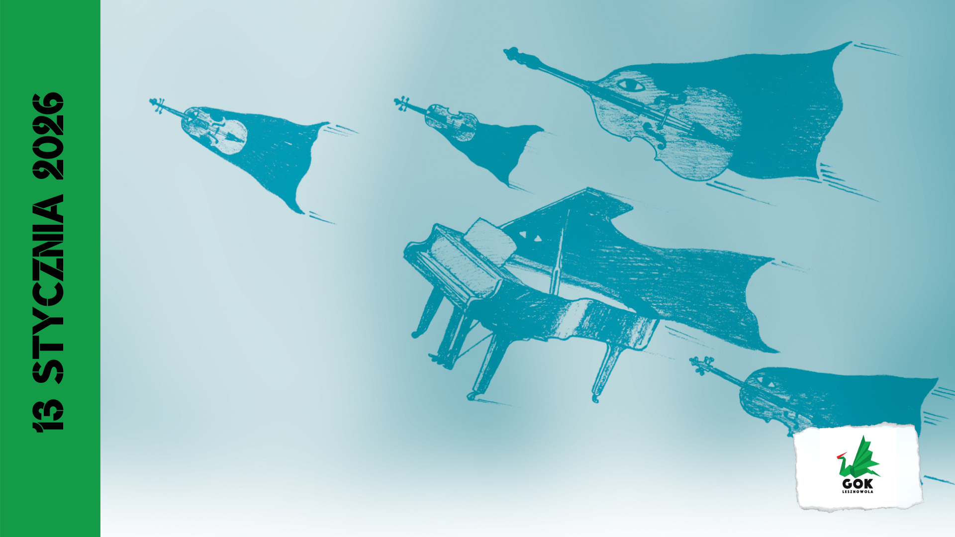 Zapraszamy na koncert Pięciu wspaniałych z cyklu "Spotkania z muzyką" w wykonaniu Filharmonii Narodowej. Wydarzenie odbędzie się 13 stycznia 2026 w godz. 13.10 oraz 14.00 (2 grupy) w filii GOK Lesznowola w Mysiadle, ul. Topolowa 2