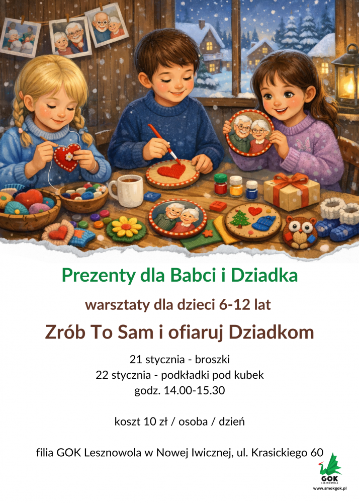 Zapraszamy na warsztaty DIY, podczas których przygotujecie drobne, ale własne prezenty dla Babci i Dziadka.